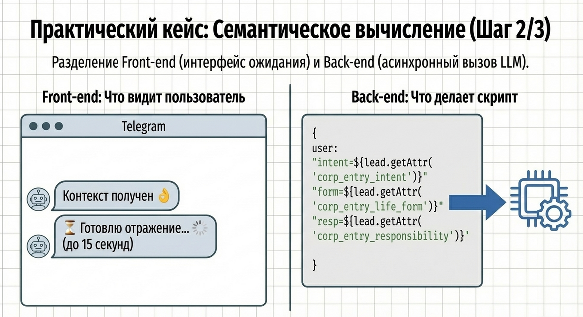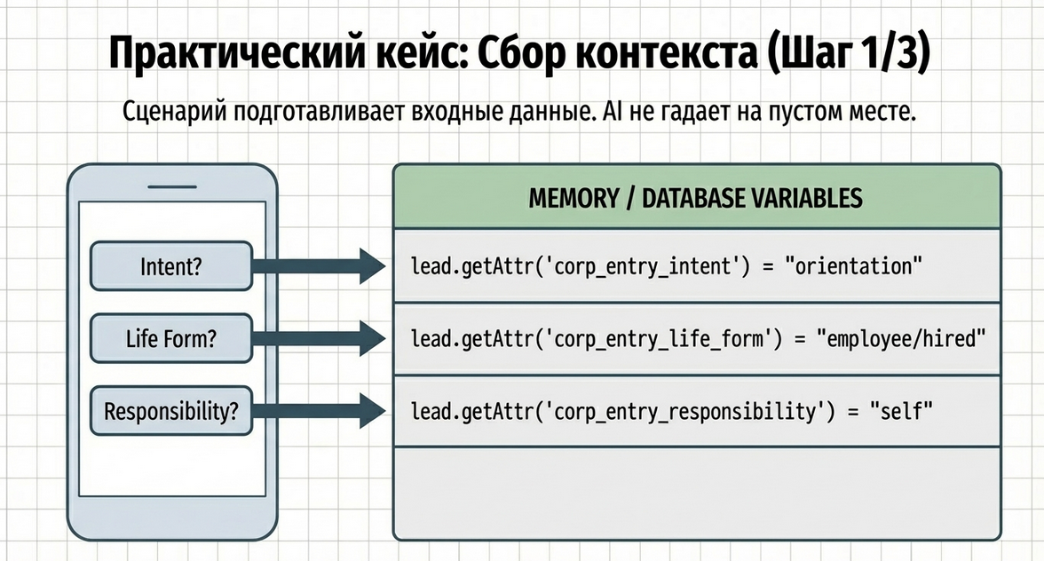 Это и есть разница между “поиграться с AI” и построить управляемый AI-сценарий.