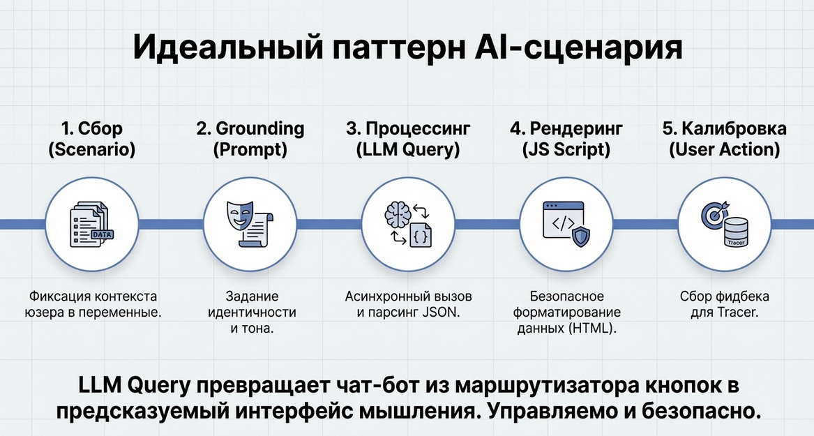Он позволяет встроить запрос к искусственному интеллекту в сценарий так, чтобы для сценариста это выглядело как обычный шаг логики, а не как отдельная внешняя интеграция.