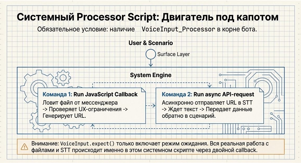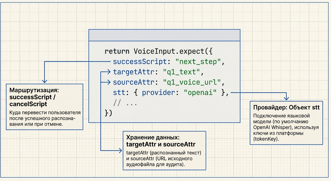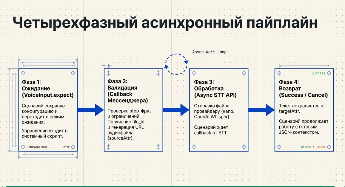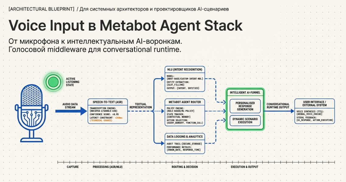 Voice Input — это высокоуровневый компонент Metabot для приёма и обработки голосовых сообщений внутри сценариев.