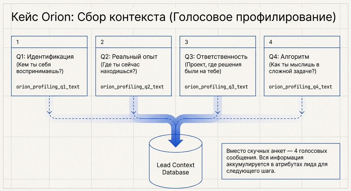 вы строите интервью, onboarding, профилирование, анкету.
