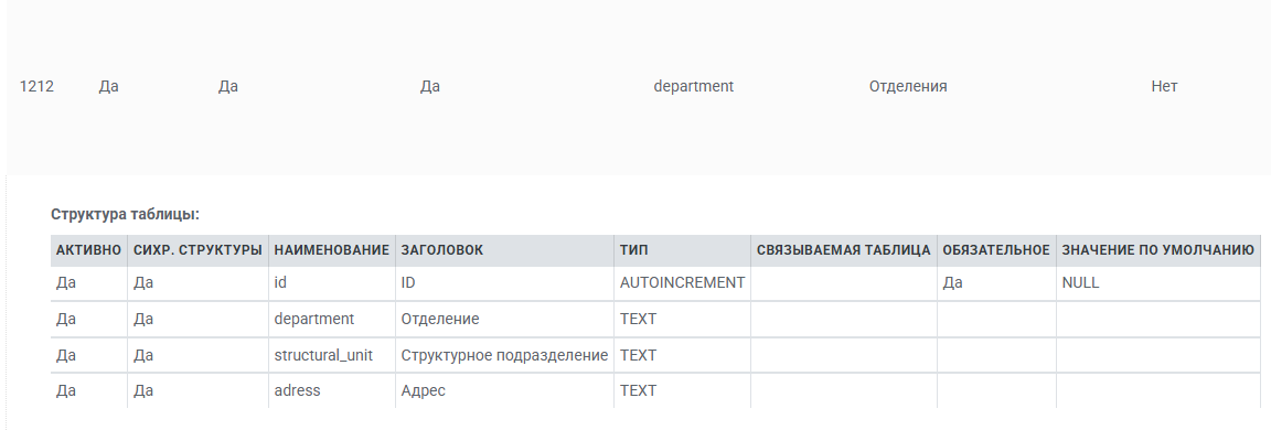Инструкция по обновлению таблицы department