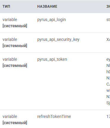 - refreshTokenTime - время для обновления pyrus_api_token (по-умолчанию поставьте 0)